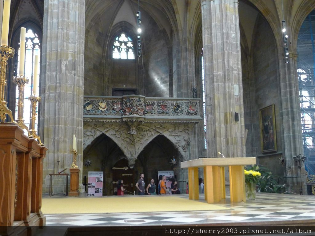 順著動線,可以看出教堂前部有較強的哥德式風采,但到了後方擴建區,卻帶點巴洛克的華麗,時代的變遷,似乎隱約可見,頗值得玩味呢。
