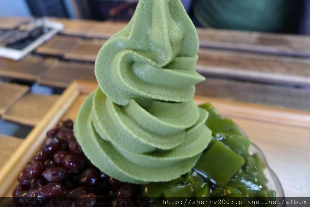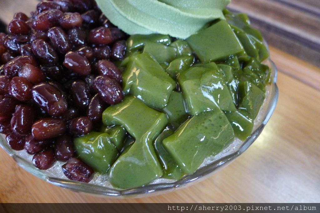 抹茶凍口感較淡雅,記得搭配霜淇淋跟紅豆一起入口,那滑順的口感又是一種驚喜。