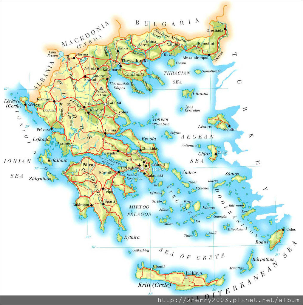 希臘地圖,一半以海島為主體,海運特別的發達。