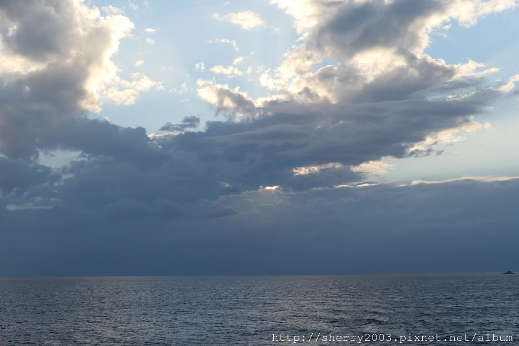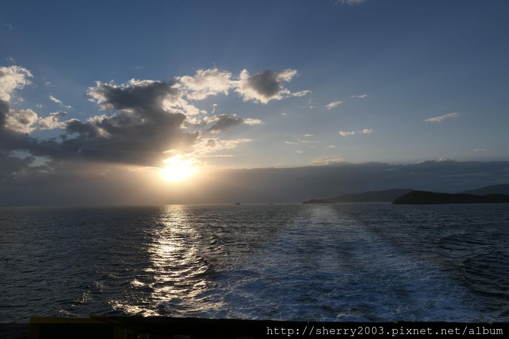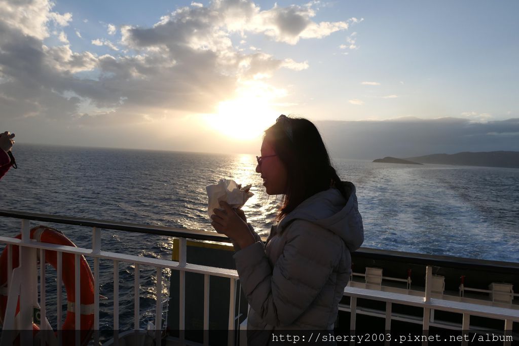 大概是從日到夜,從陰天到藍天,多種的變化組成多種的瑰麗色彩,比起搭機的快速抵達,放鬆搭渡輪也不錯。(紅色提醒再現:搭快艇就沒有這種悠閒時光了。)