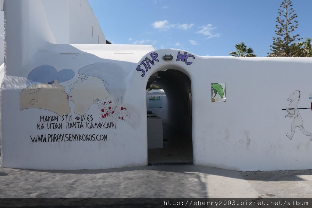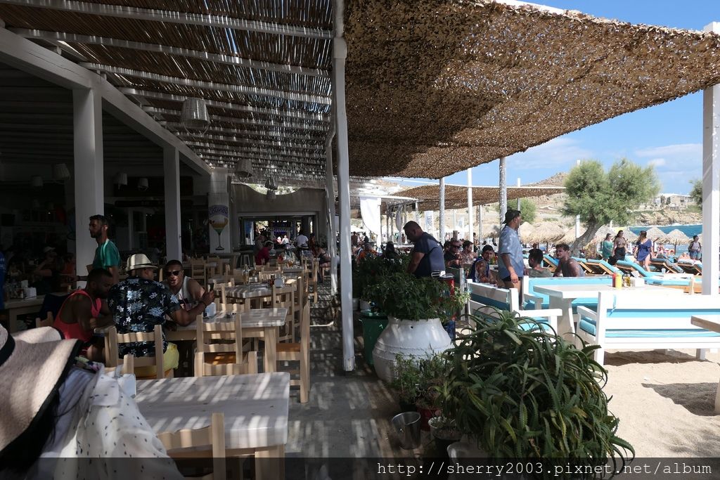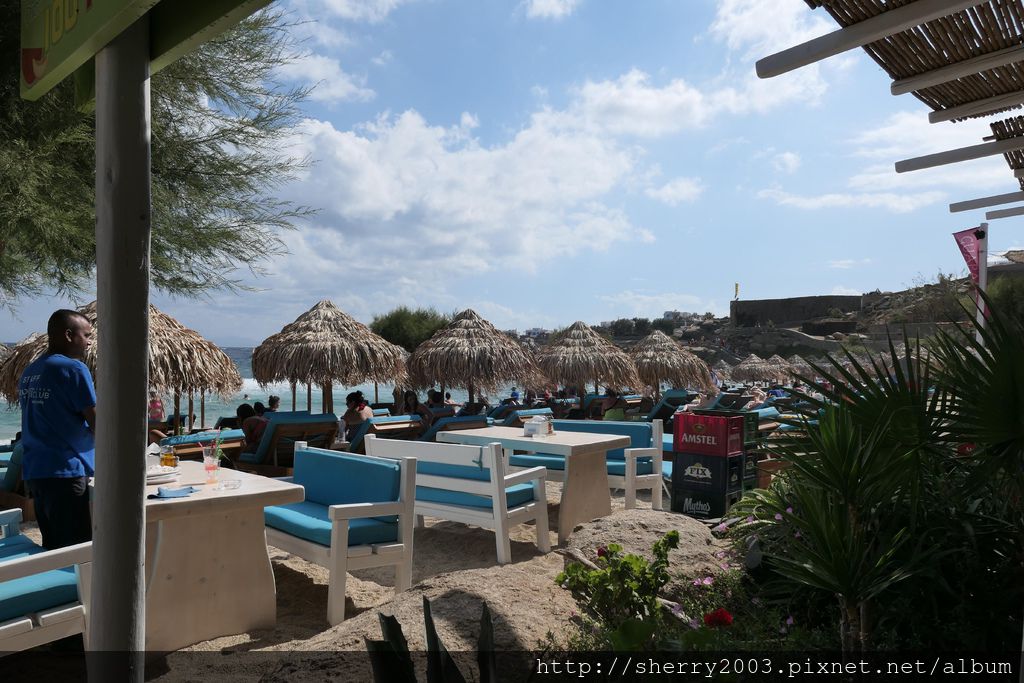 米克諾斯向來以4S聞名於世,讓觀光客趨之若鶩,這4S就是陽光(Sun)、海洋(Sea)、沙灘(Sand)、和性(Sex),這SEX指的是以同性戀居多,我們當天午餐去的就是前同性戀酒吧變身的餐廳。