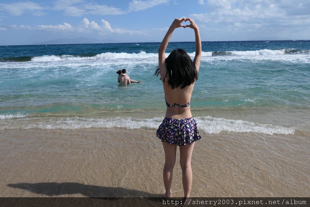 說起來,天堂海灘不像澳洲黃金海岸(我們好喜歡那邊的柔軟細砂)海灘延伸好幾公里,沙灘頂多也就三、四百公尺,但幾乎每個躺椅上都有遊客,果然是盛夏最熱鬧的季節。