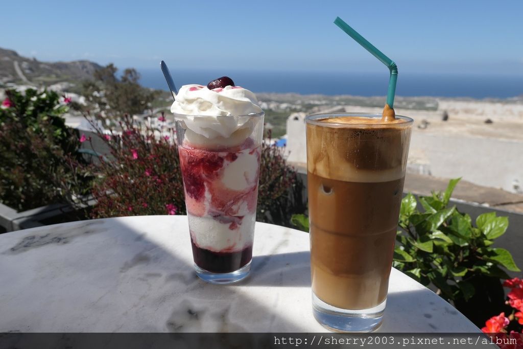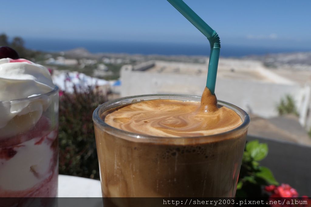 一邊聊著旅遊中的趣聞,一邊看著整片的聖托里尼,一邊暢快的喝著冰飲,這人生真是舒服的不要不要的。