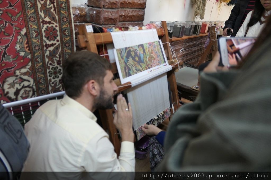 每個地毯的編織都是複雜的工藝,光看著編織婦女一拉一抽就打個繩結出來,迅速的變更著顏色後重複同樣的動作就可以感受那枯燥性與專注感。