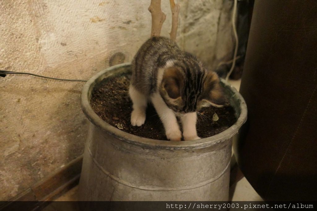 清晨四點不到就起床,盥洗完後五點在大廳集合,比我們更精神奕奕的是這隻小貓。