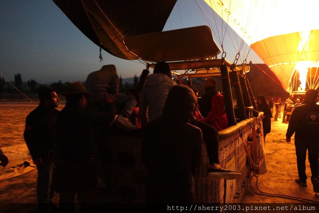 我們在卡帕多奇亞搭乘的則是20人座的,熱氣球的籐籃分成四個小區域,每個區域站上五個人,整體的熱氣球大小非常的驚人,比起我們在台東搭乘繫留時的熱氣球大上不少。