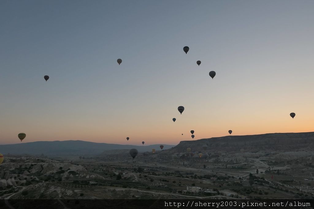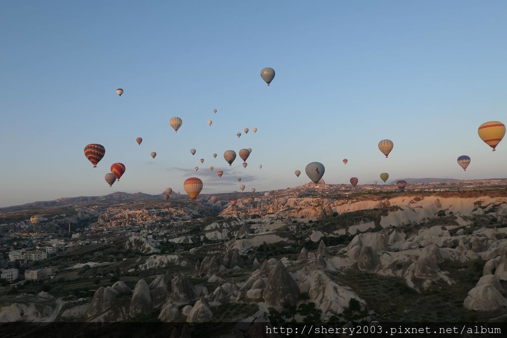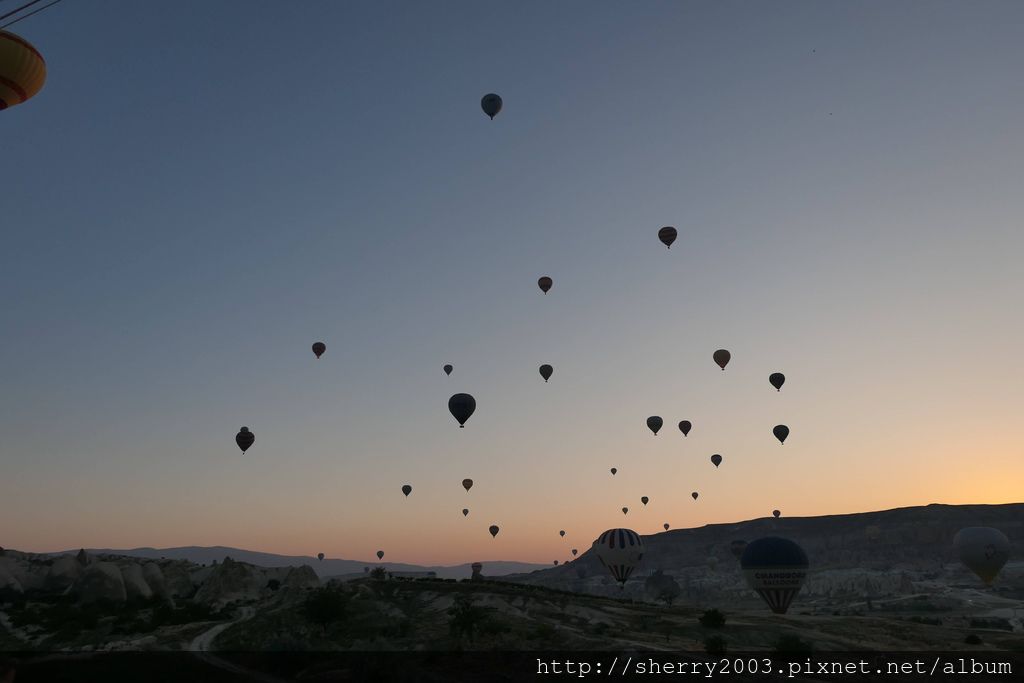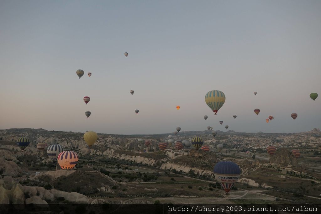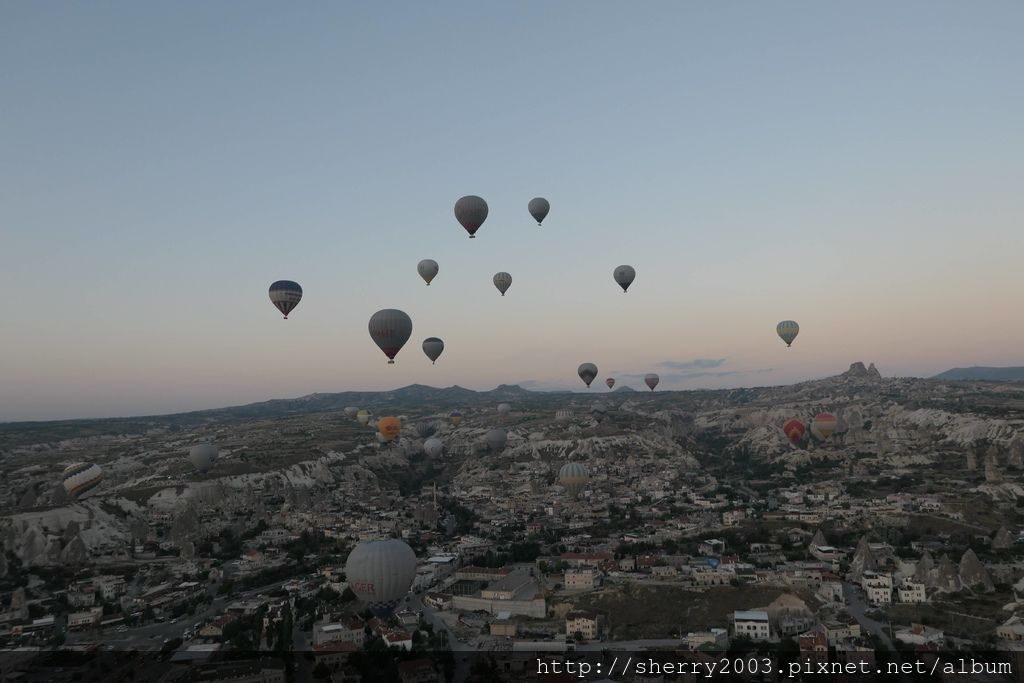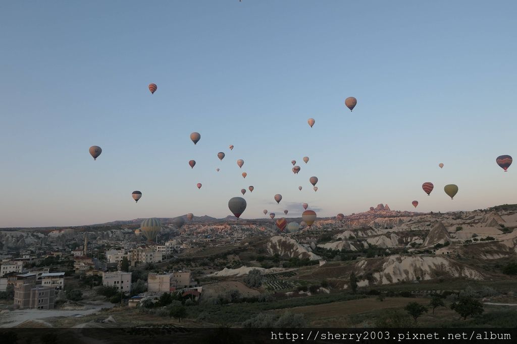 卡帕多奇亞的熱氣球,起飛有限制的不只是風速,連數量也有限制,第一批起飛的不超過一百台,為何這數字我們也不知道,接下來45分鐘後還有第二批不到五十台可以起飛,所以頂天就是同時有三千人在天上,這數量說多不多,說少也不少,但與遊客人數相比,一定有遺珠之憾。