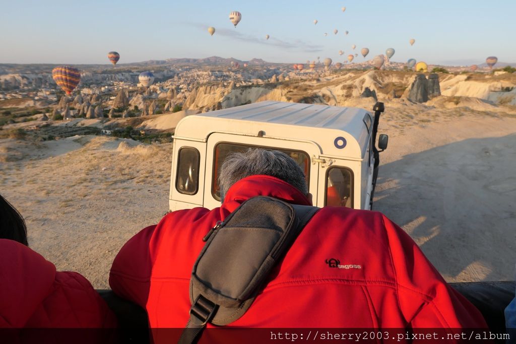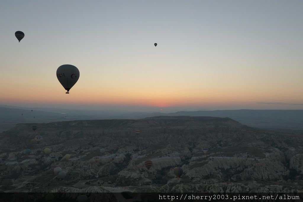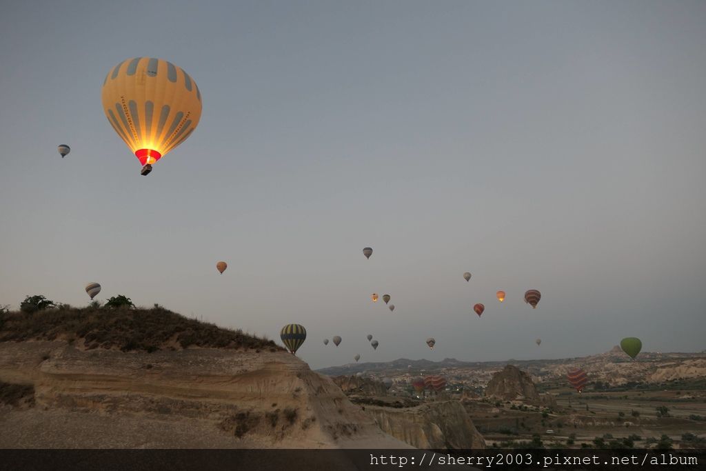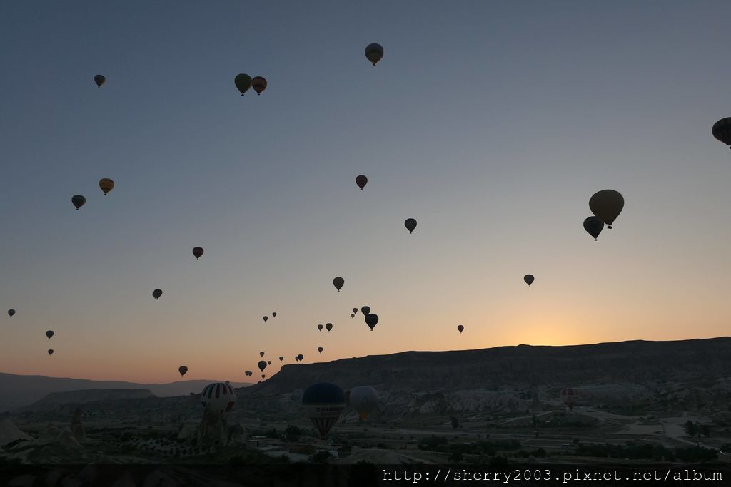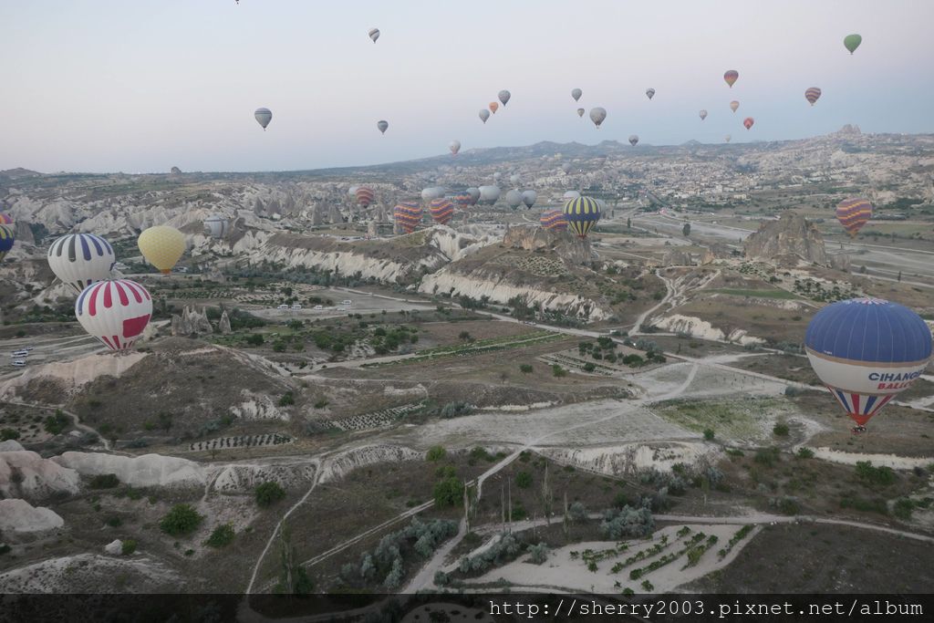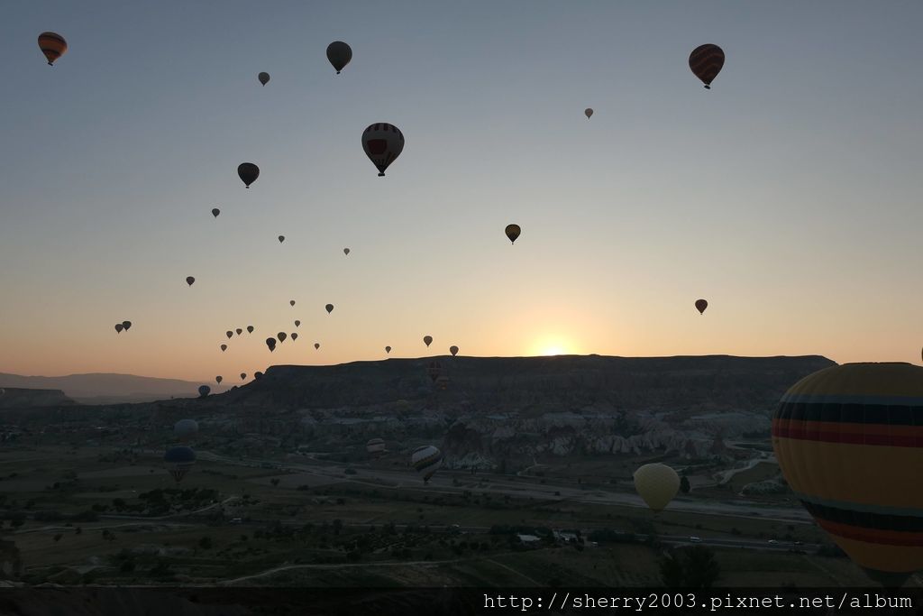 卡帕多奇亞的熱氣球,起飛有限制的不只是風速,連數量也有限制,第一批起飛的不超過一百台,為何這數字我們也不知道,接下來45分鐘後還有第二批不到五十台可以起飛,所以頂天就是同時有三千人在天上,這數量說多不多,說少也不少,但與遊客人數相比,一定有遺珠之憾。