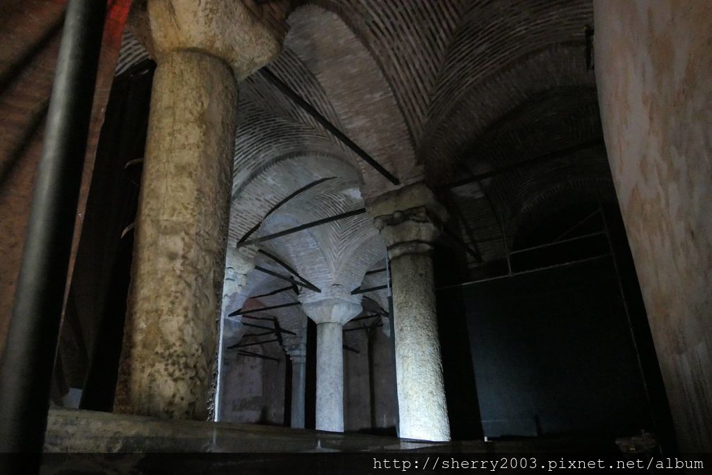 當年,君士坦丁建造蓄水池也有其時代背景,因應君士坦丁堡的建立,市民需要的水資源不足,因此總共興建了六十座的蓄水池,並不止這一座,但這座是最古老、最龐大的,附近另外還有完全打光,明亮異常的其餘蓄水池開放參觀,但觀光客比較少去喔!