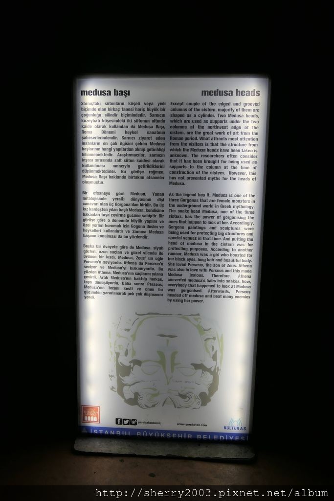不知道大家看到地下水宮殿怎麼解讀,是地下水+宮殿,還是地下+水宮殿,感覺兩個差異不大,但想來原本的用途是儲存地下水,而且土耳其文Yerebatan Sarayı的含意是沉默的宮殿,所以我們就擅自解讀為地下水的宮殿囉。