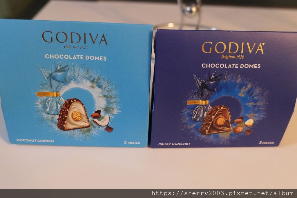 Godiva盒裝的夾心巧克力,有椰子跟榛果口感的,很特別。