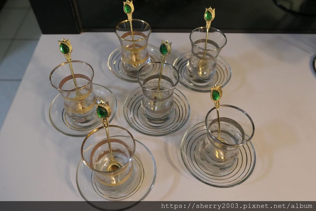 購買地點:看一家,買一家,真的是忍不住,包含1.有頂大市集內(整組);2.托普卡匹皇宮博物館商店(半月杯);3.朵瑪巴切皇宮紀念品商店(綠寶石色杯匙)