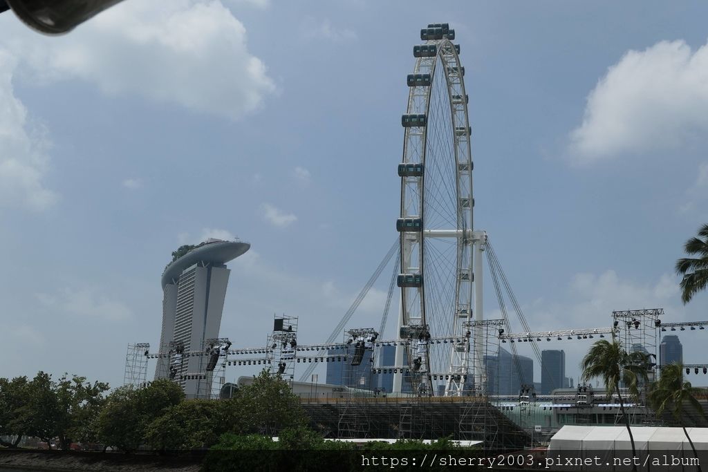 摩天輪旁正在興建中的場地是F1賽車的保養廠,接下來即將啟用。