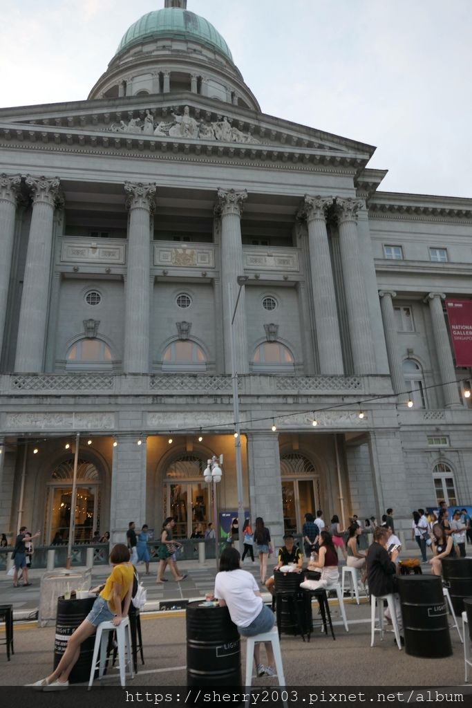 穿過連接區,此處的稱呼為草場中庭連通道(Padang Atrium),可以抵達舊政府大廈,附近人潮聚集較多,想必是夜間的美麗吸引了這些撲向光影的飛蛾。