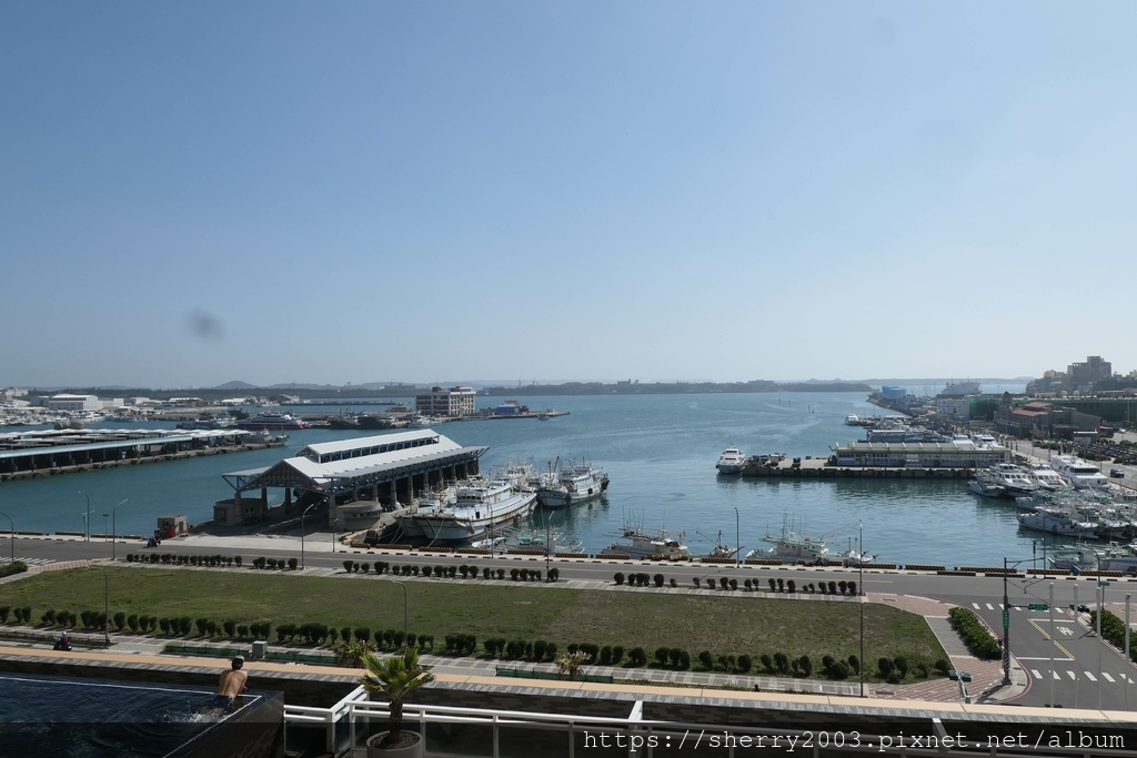 遠處,是馬公港,海天一線的風景,從房間就可以欣賞,太棒了,許多外島活動都是從下方出發的喔。
