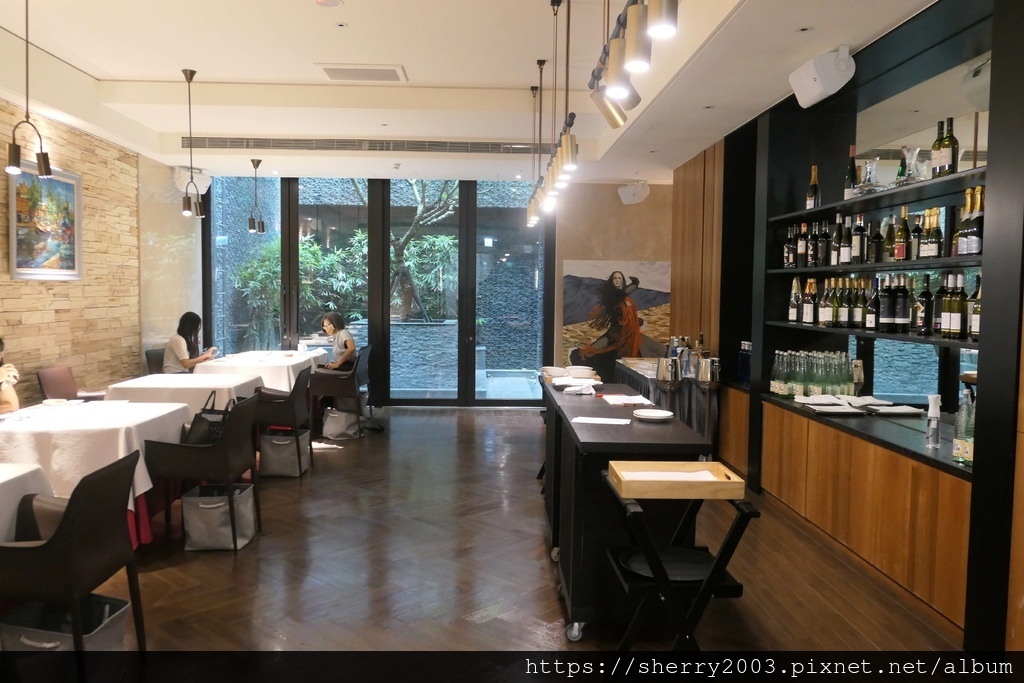 餐廳屬於長條狀,座位間格頗大很舒適,內側還有包廂,總計二十幾人沒問題;外側的酒櫃不算多,也許還有秘密。