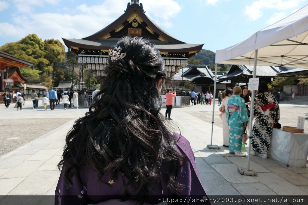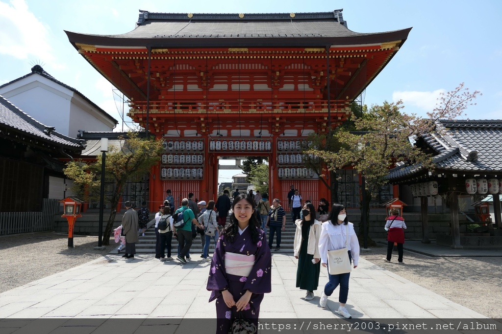 八坂神社的入口與本殿,有看見後方不少和服妹嗎?