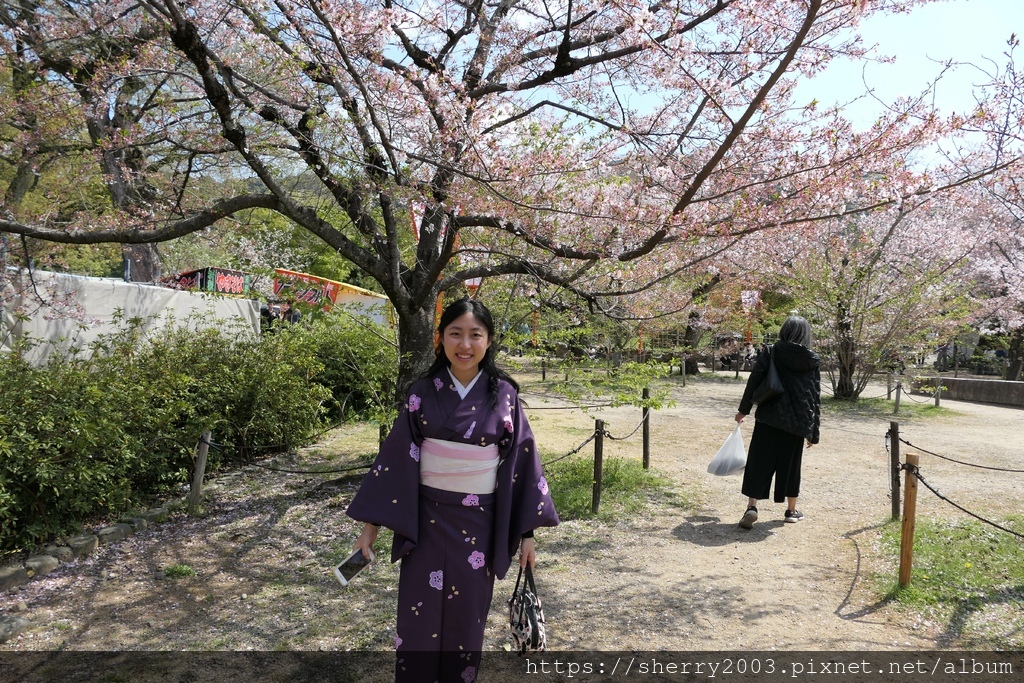 側邊,有些許的櫻花,記得櫻花季穿著太淺色對比會不明顯,反之楓葉季穿太深也是一樣。