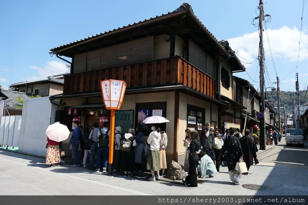 路上還看到間排隊很熱門的店家,是蕨餅一流的ぎおん徳屋,還沒開店就先排隊,太過分了,好想吃喔。