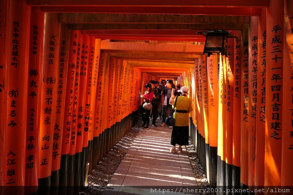 滿滿的觀光客,滿滿的觀光客,這是走近千本鳥居的感想,在伏見稻禾大社入口還沒感受到多少人潮,但來到千本鳥居才知道人潮都在這邊。