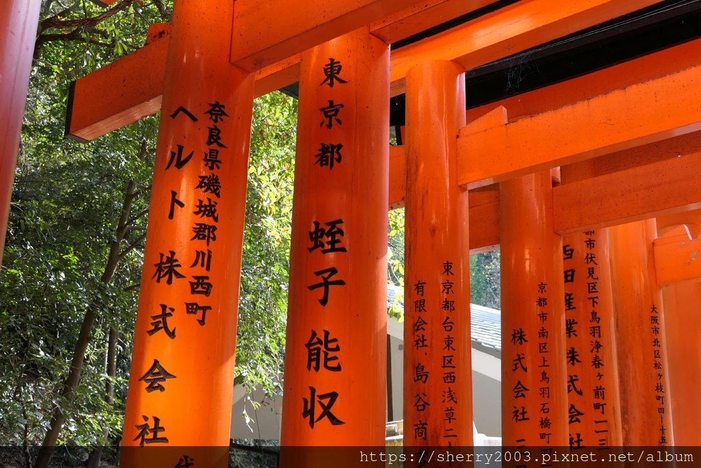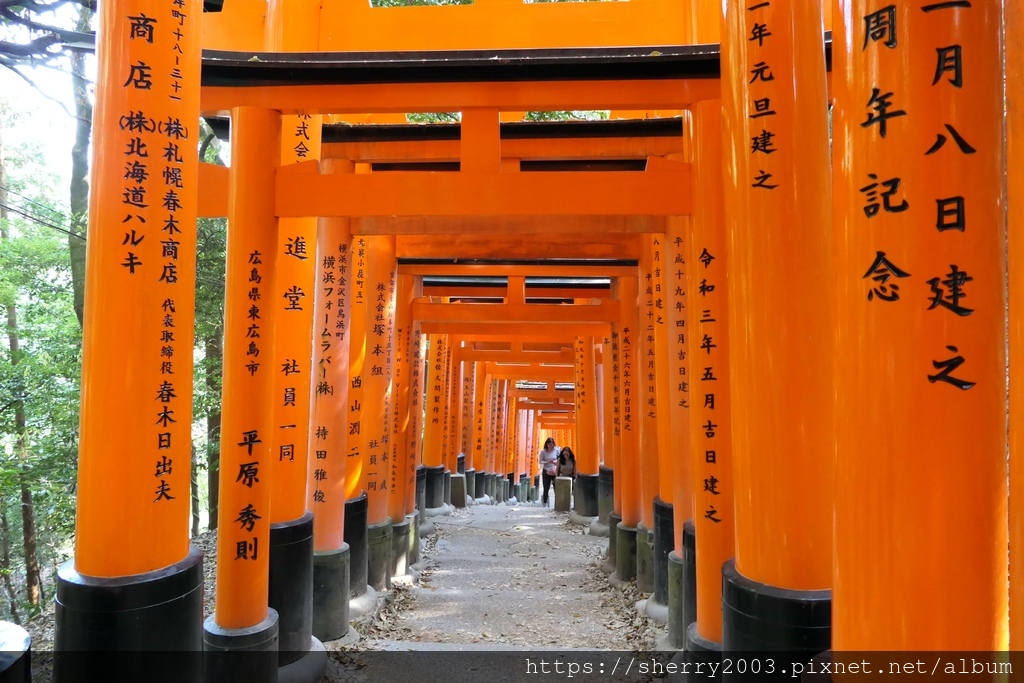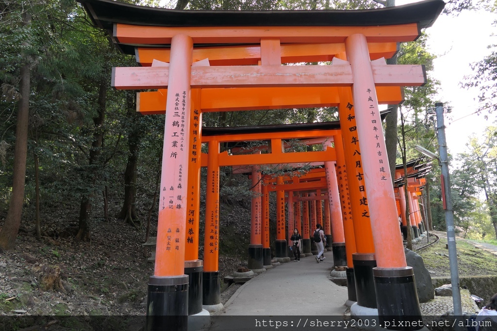 據信有將近上萬的鳥居遍佈在整座山上,沿途一直向上可以看見新舊不一的朱紅色鳥居,有些間隔可以發現新舊的差別,應該有些老舊的已經被汰換了。