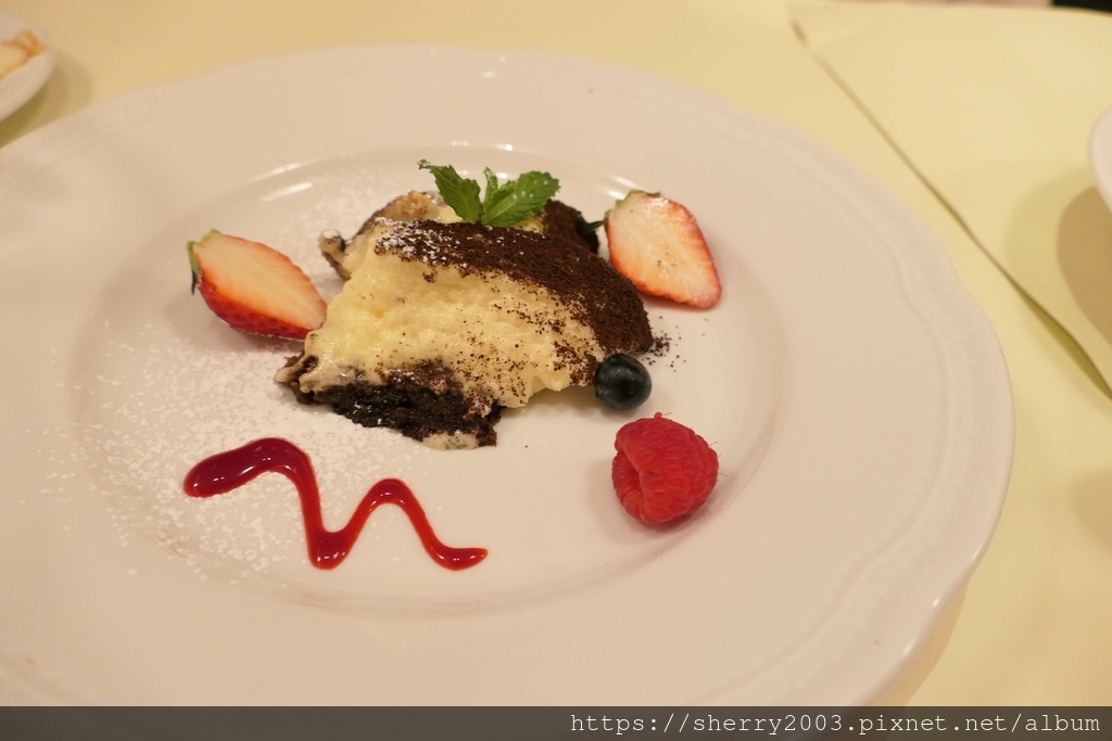 Al Porto經典提拉米蘇(¥990),比一般提拉米蘇加上些許的草莓與藍莓,濕潤度更高的一種作法。