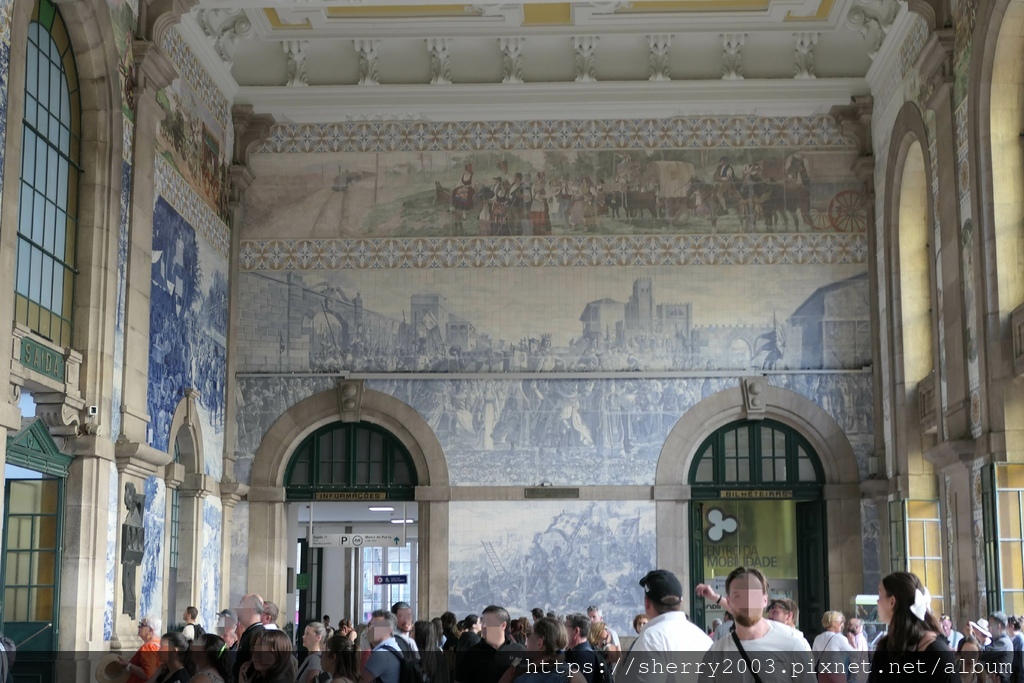 數量多達兩萬片的藍瓷裝飾,由畫家Jorge Colaço繪製,於1916年落成至今,直接在大廳面對我們,以葡萄牙的歷史故事為核心,展示著各個地區的人們。