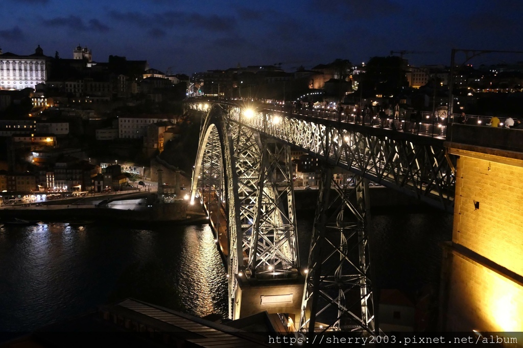 路易一世大橋為雙層的鐵橋,上午我們在下層河畔以及遊河時看過,這次改由上層來欣賞,加上兩側餐廳與建築的燈光,份外的美麗。