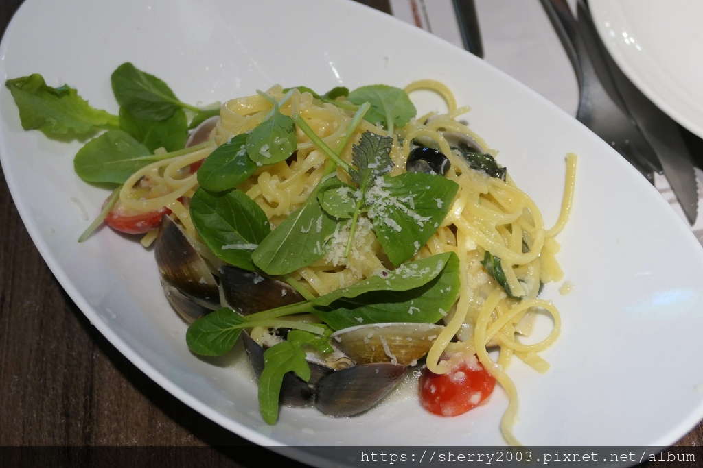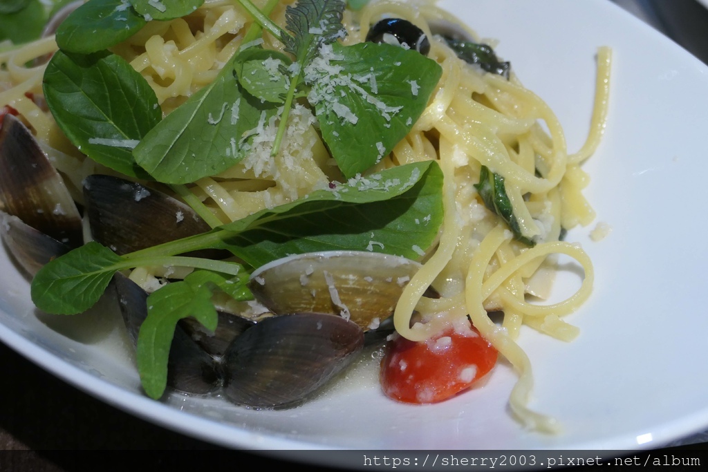豪蒜蛤蠣義大利麵($380),名稱很霸氣,但蛤蠣其實數量尚可,不過粗細適中的麵條有吸到汁,還算可口,中規中矩的一道。