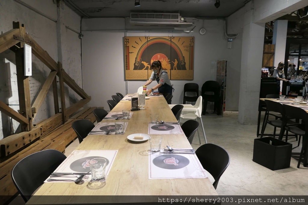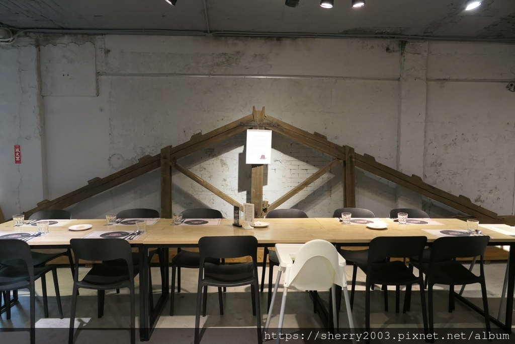 字早期的水泥牆旁,簡易搭上木裝潢也很有味道,這是類清水模概念優。
