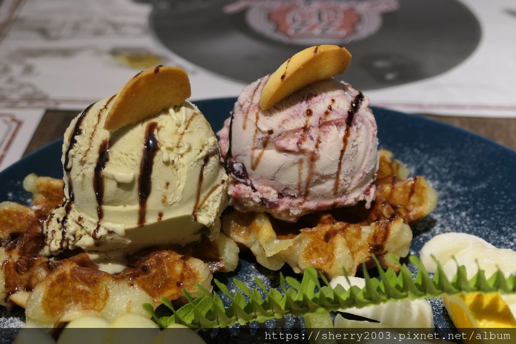 下方擺的是比利時鬆餅的口感,又脆又酥,不過冰淇淋太好吃,不用鬆餅夾冰淇淋就很棒。