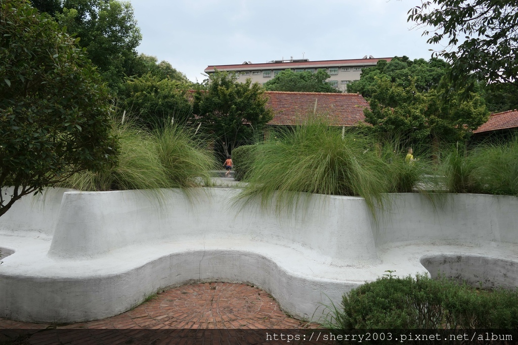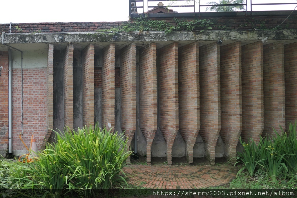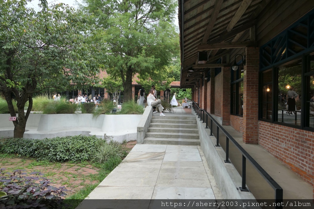 往花園另一邊散步,建築外側的造型很有經典感,而且搭配紅磚設計復古風情滿滿。