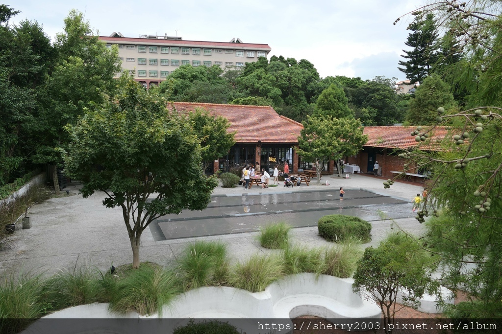 有個大大的噴水池,以及一個獨立的宴會區,小朋友在這邊衝水池沖得不亦樂乎。
