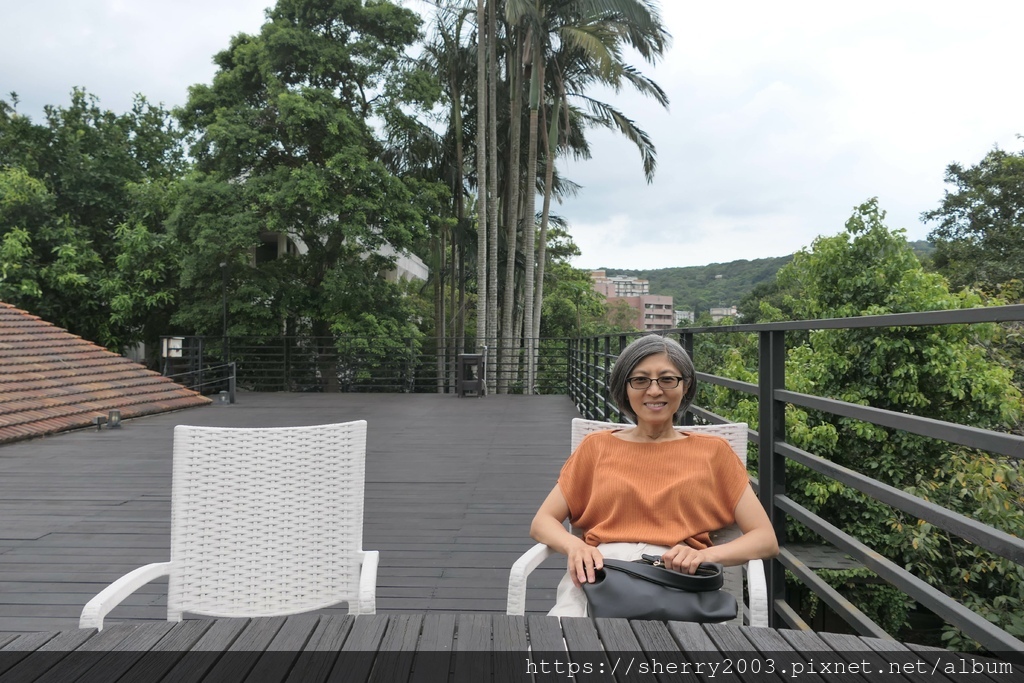 這邊可以上到二樓來,有陽台可以讓人歇息,有看到那玻璃窗嗎?還記得我們在內部用餐可以看到天花板的透明玻璃,對接起來了喔!