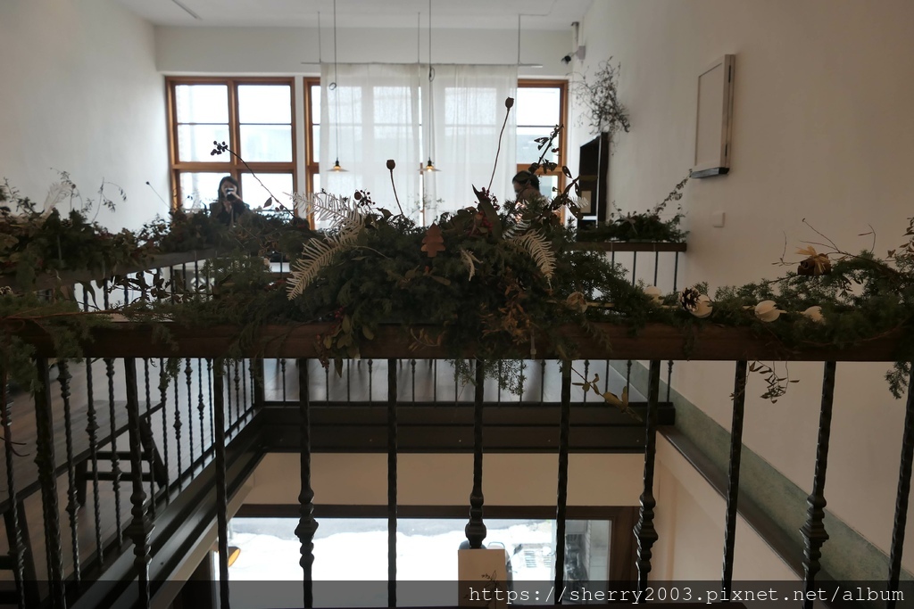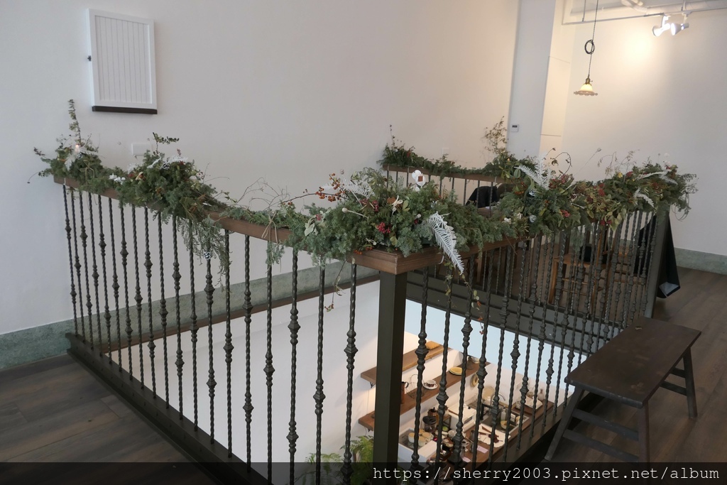 我們的座位就在中央的一、二樓打通區旁,沿著欄杆店主人巧思的布置了諸多的植栽,點綴得美輪美奐。