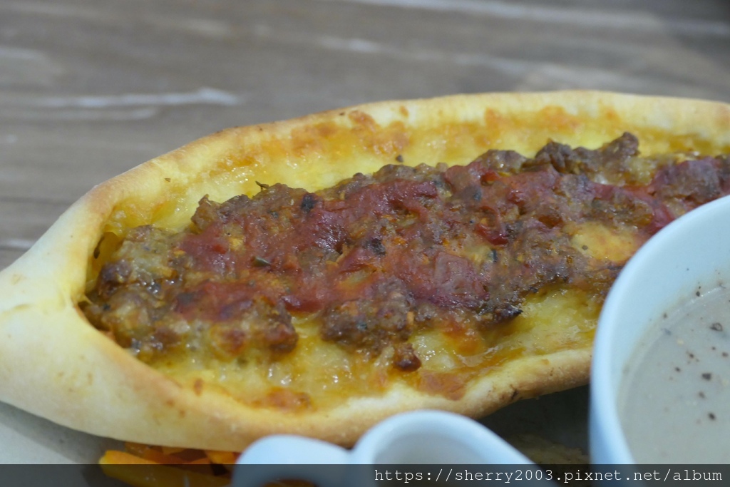 船型披薩是土耳其的基本風格,與義式披薩差異在加蛋又上了肉醬風,但餅身還是很順口,一種爽脆的口感,配起香料不錯喔。