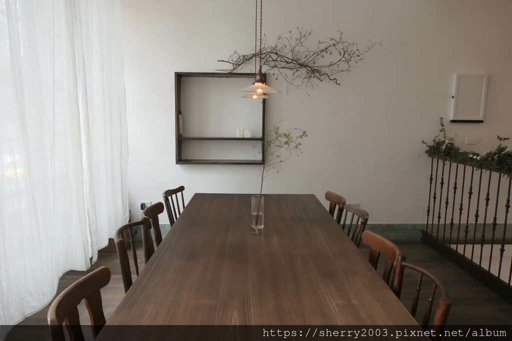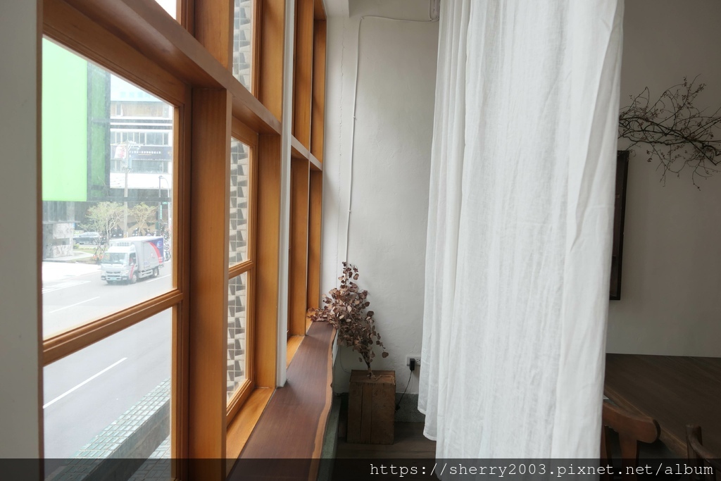 後方靠近對外窗台處,安排著一張長桌,如果人數較多可以在這區,店家很貼心喔,臨窗的白紗窗簾把內外分為兩個世界,隨著陽光的微笑可以調整。