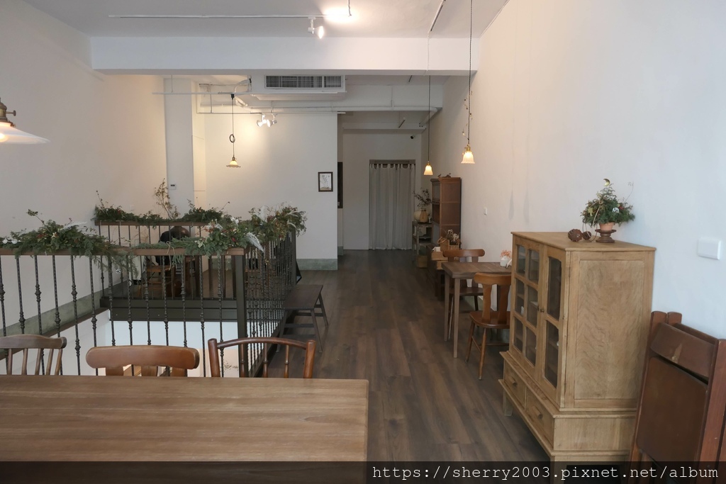 走進店內,白色系的內裝,木桌木椅搭配一些些的小擺設是一樓的主軸,甜點空間也在這邊喔。
