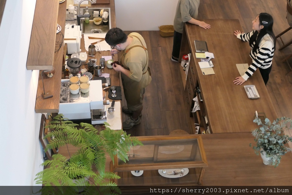 偷偷看往一樓,甜點區、櫃檯區與對外座位區,是一幅眾生圖,那是我家的在點餐吧。