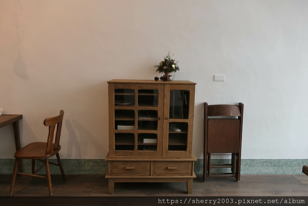 不只是木桌木椅,還有一些老舊的木櫥櫃也融合在一起,這是我們外婆老家的回憶。
