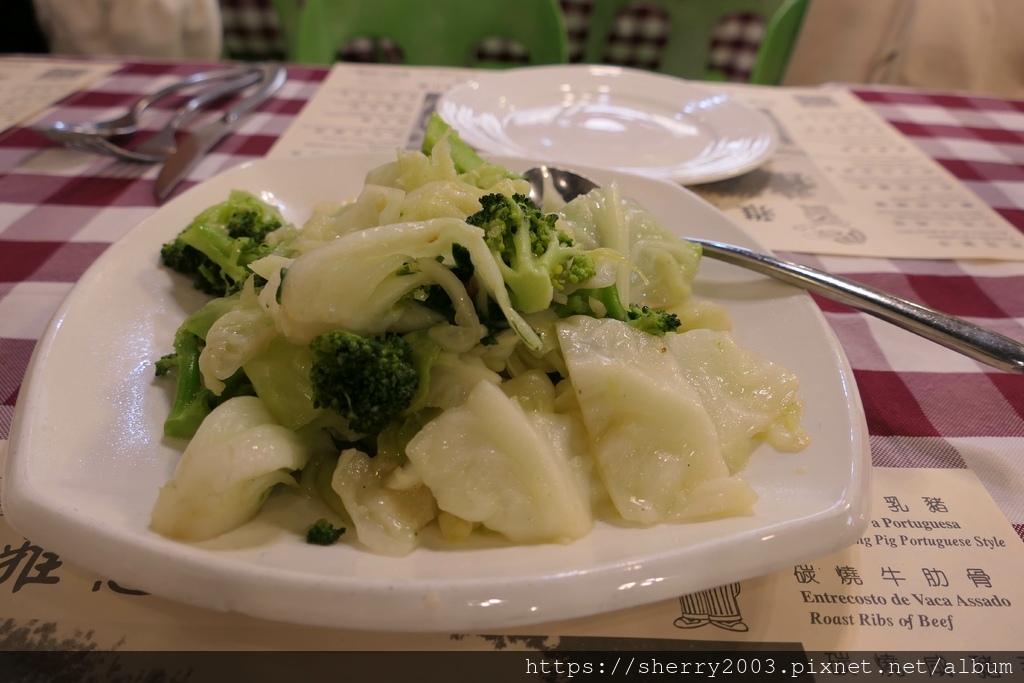 青菜部分是蒜蓉炒時蔬(MOP 68),這道份量跟口感很一般,但價格很觀光。