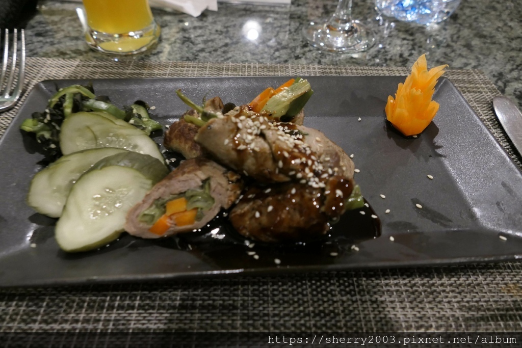 前菜首先上來的是牛肉捲,中間夾上青菜與紅蘿蔔來解膩,因為醬汁真的有鹹,但牛肉算嫩的,脆口脆口的滋味。