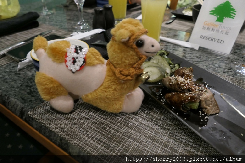 剛剛在對面商店買的小紀念品,駱駝小子也說他餓了要吃肉,開心啊,按壓還有阿拉伯音樂,可以翩翩起舞。