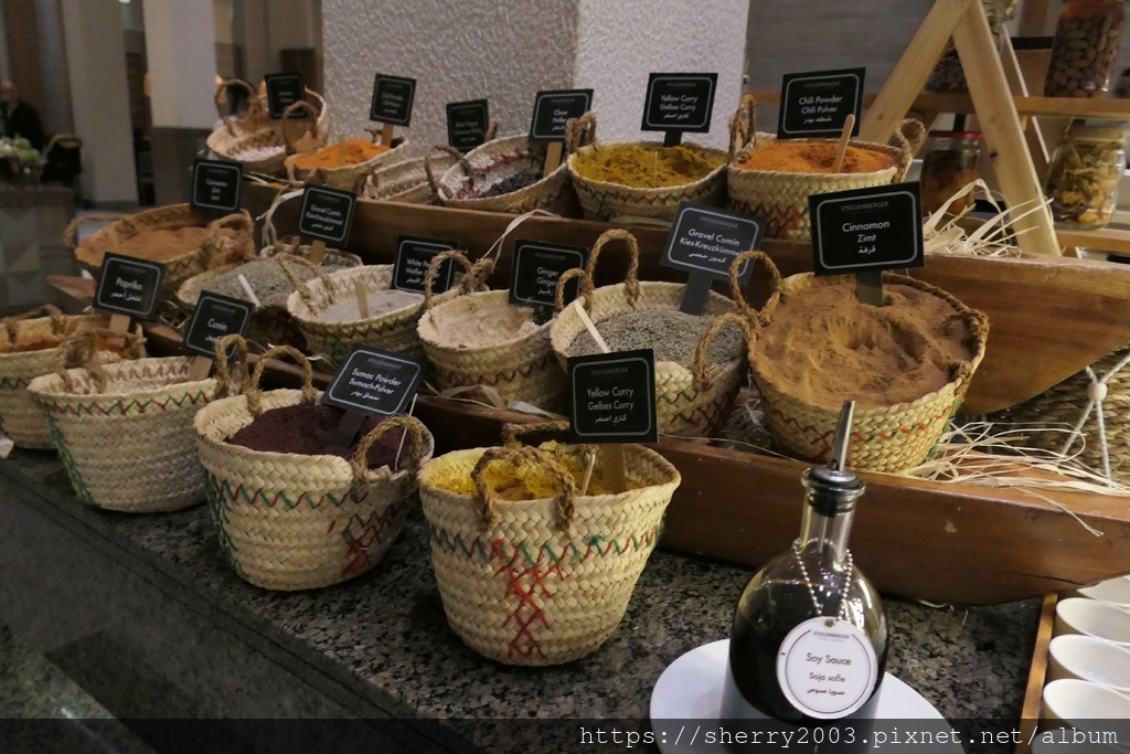 所以許多在埃及少見的品項在此處都出現了,無論是多種類的歐式麵包、各類的調醬連醬油、蠔油、老抽等東方味道都有提供,這些都很厲害喔。