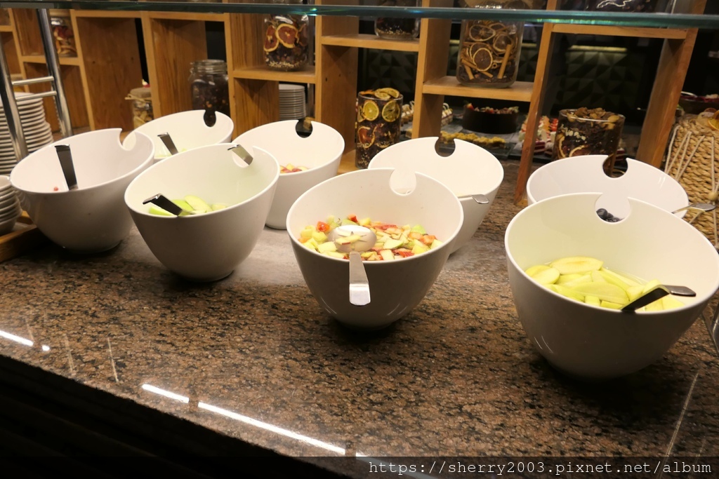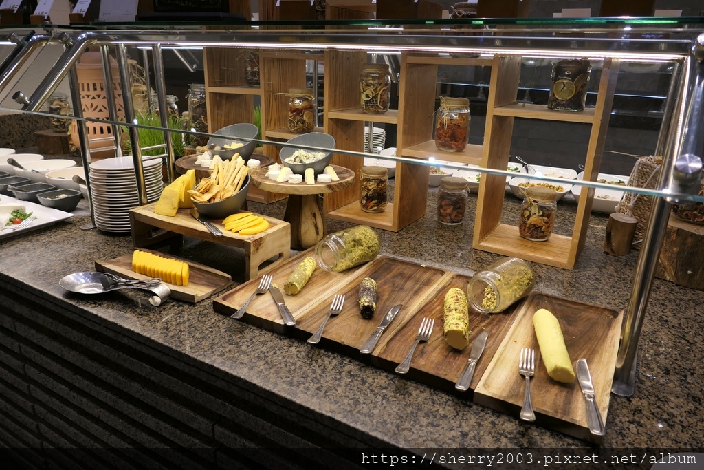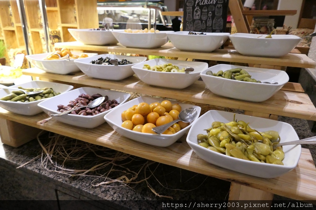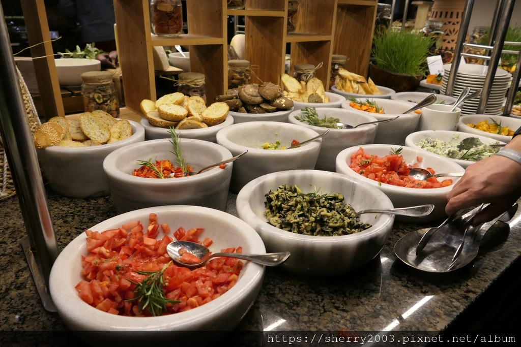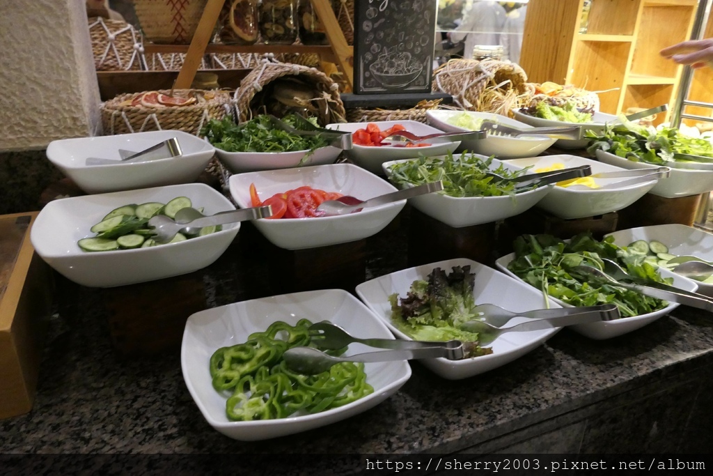 剛剛明明記得有一區的生菜沙拉,但轉頭又發現一區,加上小麵包可以用來塗抹,都考慮到了;對了,還有貴鬆鬆橄欖油等世界各種調味醬汁都提供。