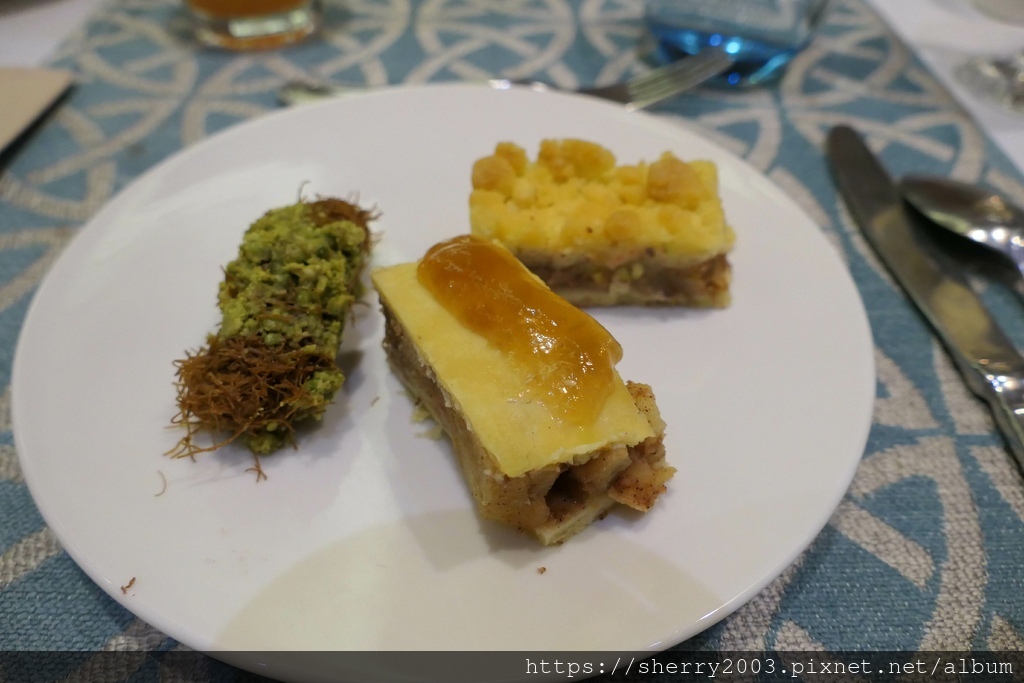 當然,中間其他就跳過,知道大家喜歡甜點,看那個果仁蜜餅(Baklava)有多誘人啊,開心果有多香啊,每種口味似乎都很值得介紹耶。