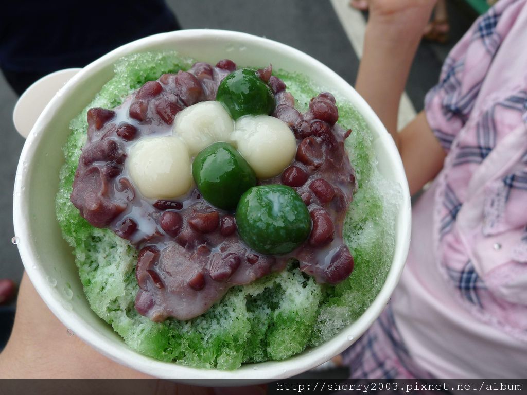 走出郵局,天氣熱得兩眼無神,急需冰凍物品解除此異常狀態,結果大家看中了這邊著名的抹茶紅豆冰,歷經漫長的排隊後,終於到手。
