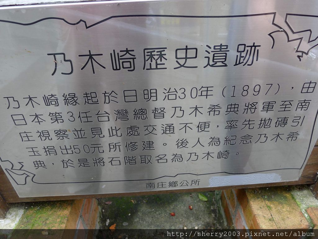 接著向前行,路旁有乃木崎遺跡,是日本人乃木崎將軍於1897年派駐在台灣擔任第三任的台灣總督時所做的一條古道,不過率先捐竟然是"50元",不知道當時50元等同現在的多少,真好奇?