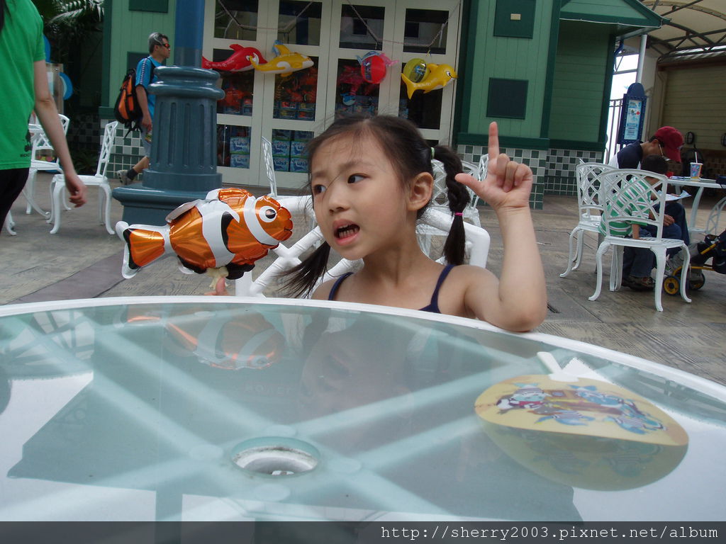 看完了海豚表演秀,結果手上買的戰利品是小丑魚尼莫。