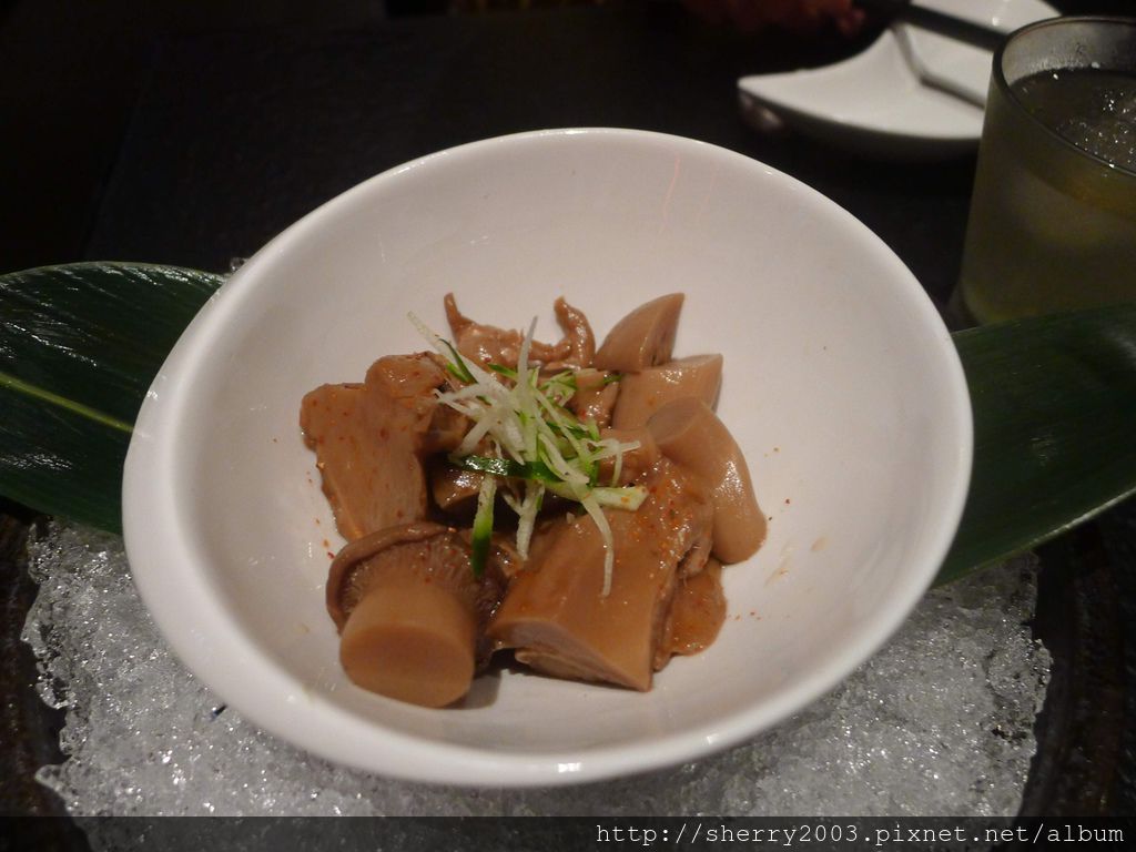 這是領班送的菇菇小品,因為她們把我們跟另一桌訂餐的客人弄混了,把我們晾在旁邊一陣子,後來趕緊來道歉賠禮。